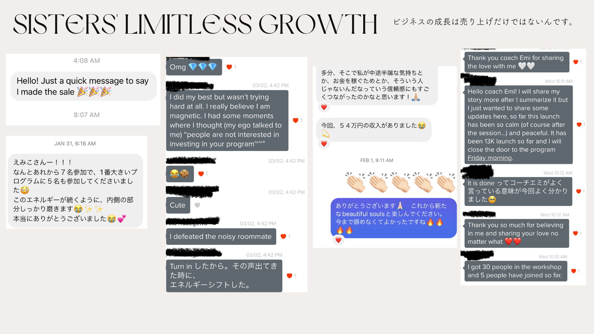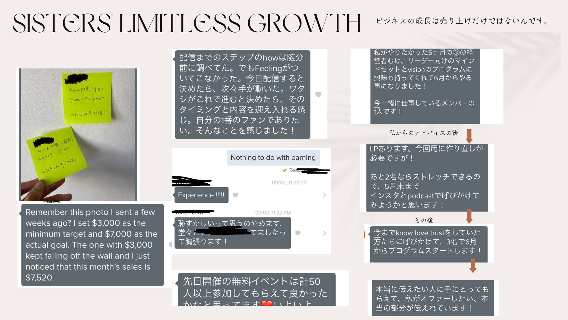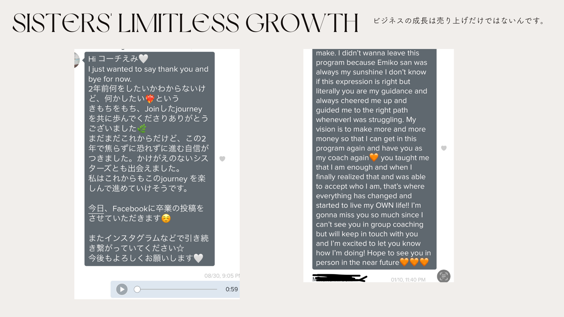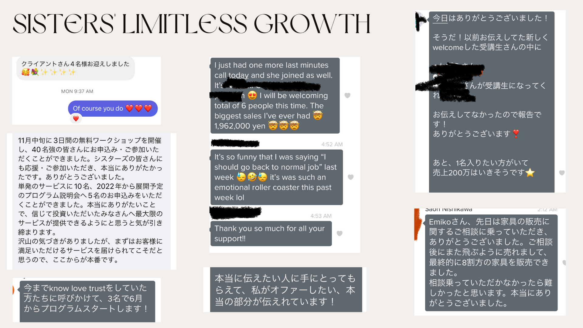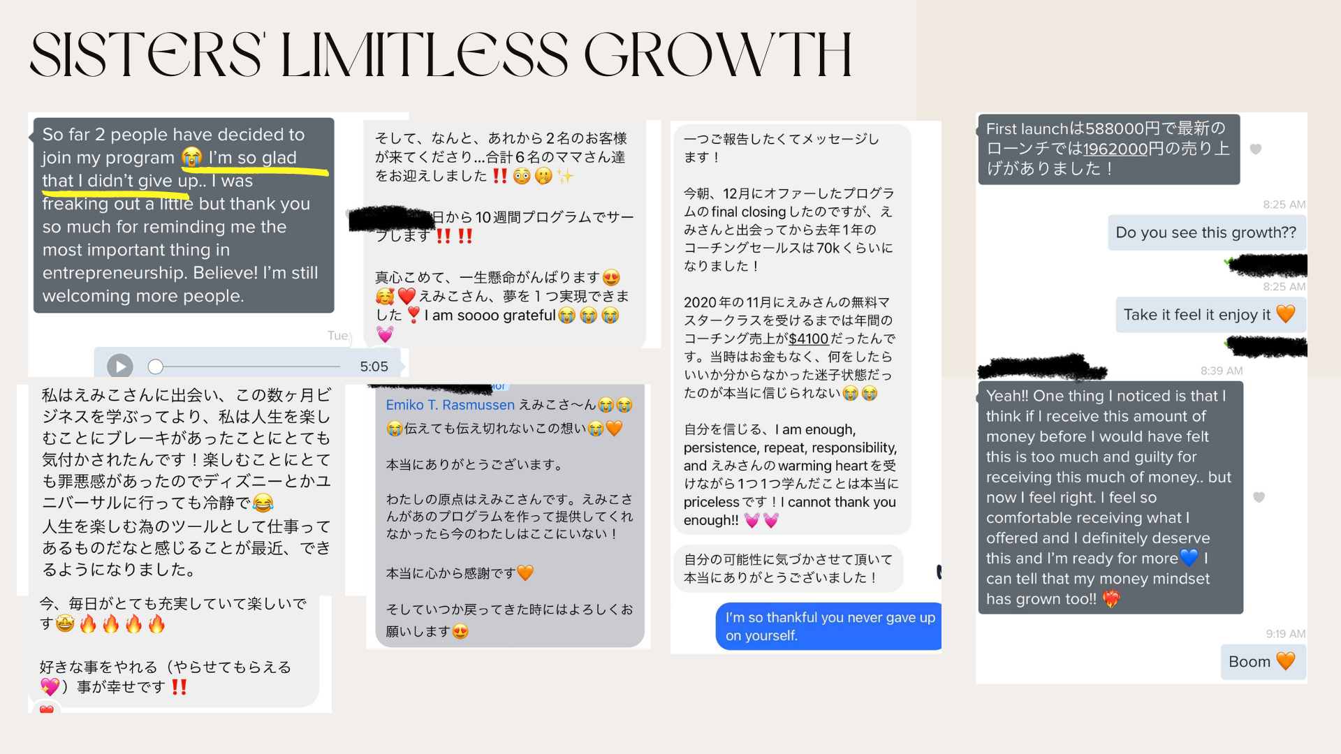 副業でコーチングをしている時を含めあれから、13年、多くの日本の女性がビジネスと人生の進化と変容をサポートしてきました。2020年以降、私のビジネスは年商8桁のビジネスコーチング会社を立ち上げてきました。